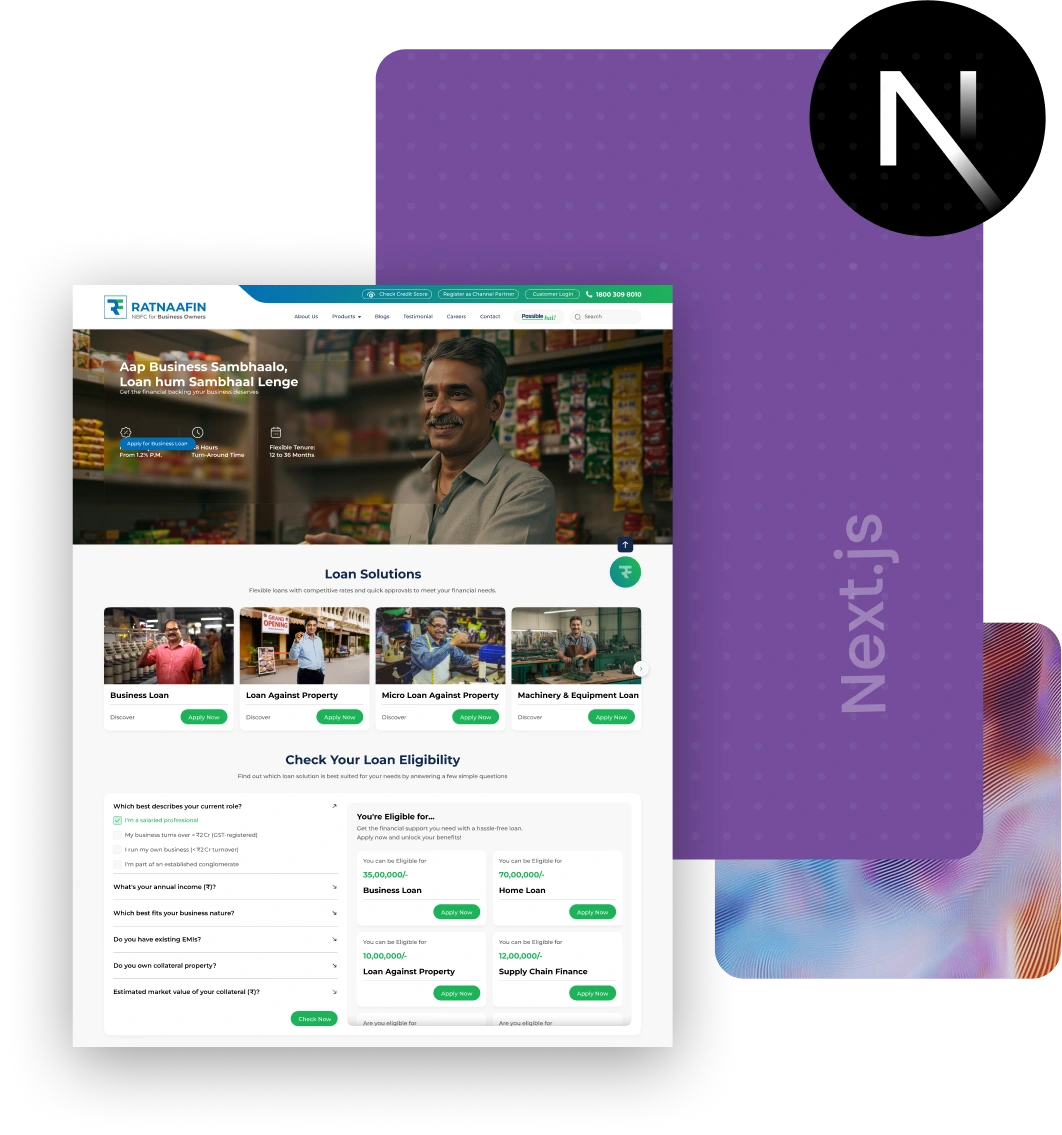 Maximize your web app’s performance with our Next.js development solutions, built for scalability, speed, and SEO excellence. Get in touch with us for a personalized action plan and start building future-ready web applications today.