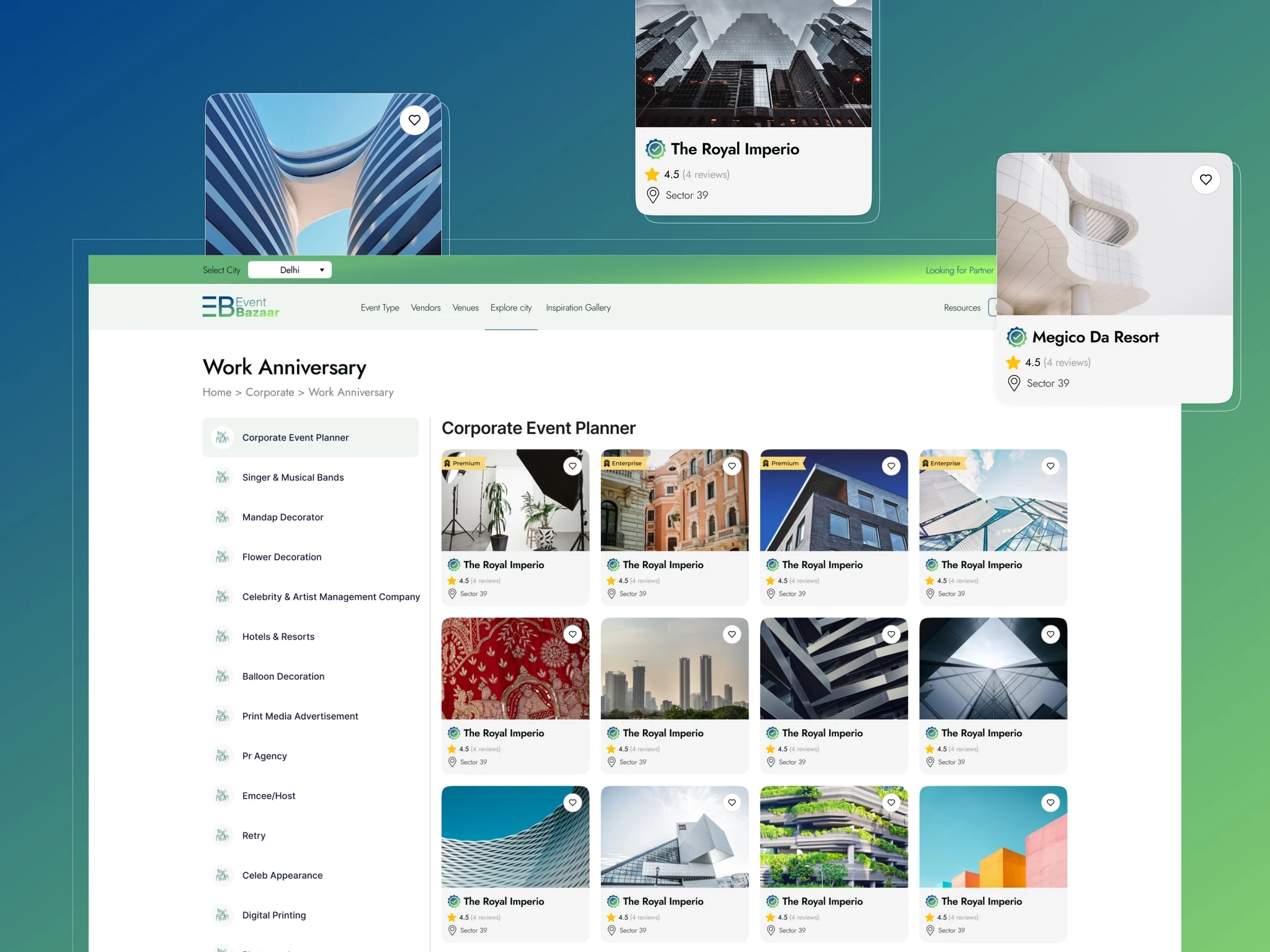 EventBazaar.com is positioned as India’s first comprehensive digital platform dedicated to the event management industry. Launched from Ahmedabad, it serves as a one-stop marketplace connecting users with a wide range of trusted vendors for social, corporate, and milestone events. With over 135+ vendor categories including catering, décor, photography, and logistics the platform simplifies event planning by bringing everything under one roof.
