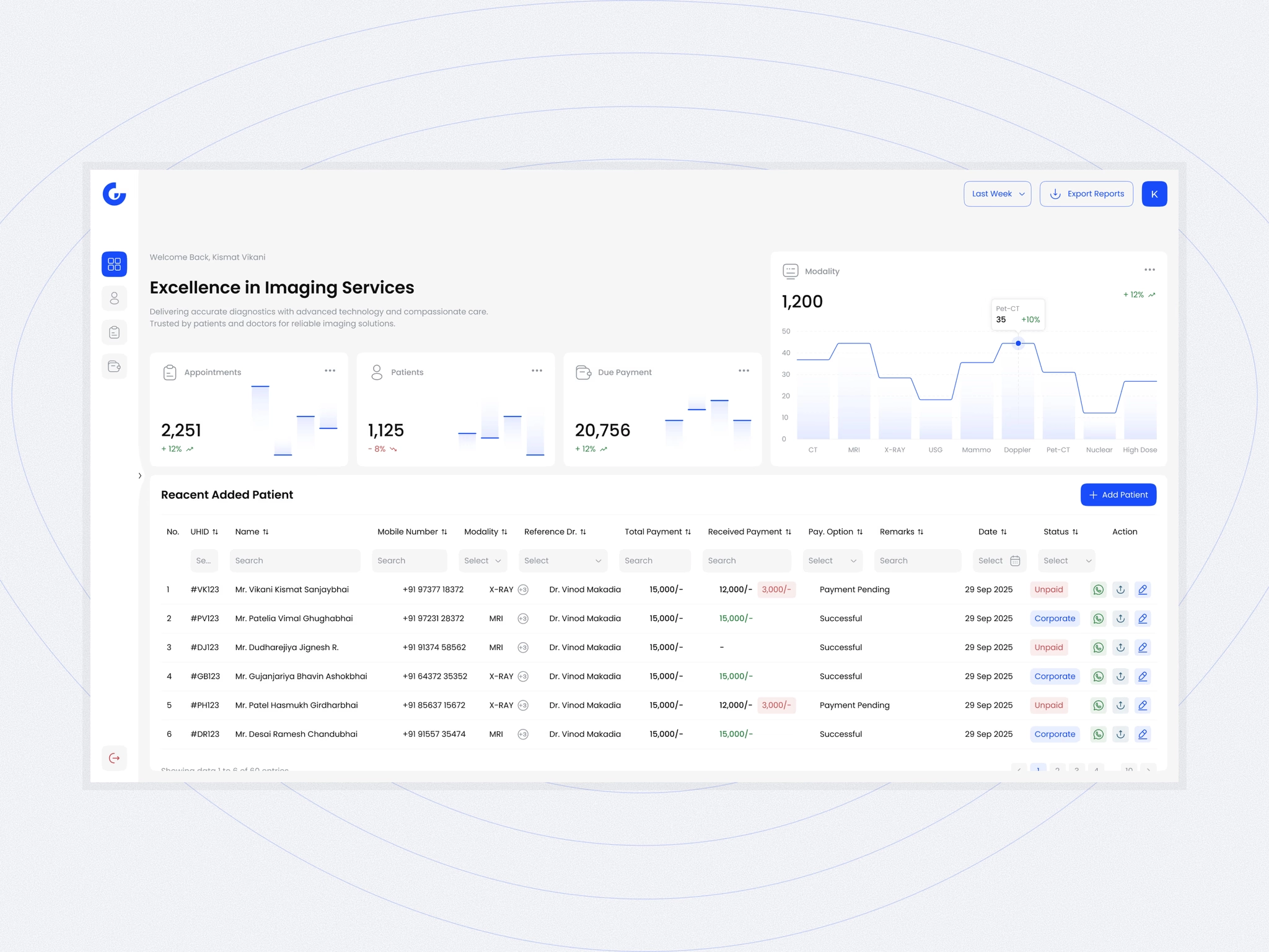 The primary objective was to design a solution that is simple to use, scalable for growing operations, and efficient in handling complex workflows. By focusing on intuitive navigation and clear information structure, the system enhances productivity, reduces manual effort, and ensures smoother coordination across departments, ultimately improving the overall operational performance of imaging centers.