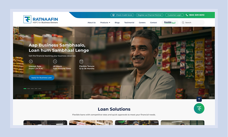 Ratnaafin, an NBFC focused on empowering MSMEs, needed a modern and intuitive website that builds trust while simplifying the loan journey for users. The goal was to create a seamless digital experience that clearly communicates financial offerings and makes it easy for businesses to explore and apply for customized solutions.